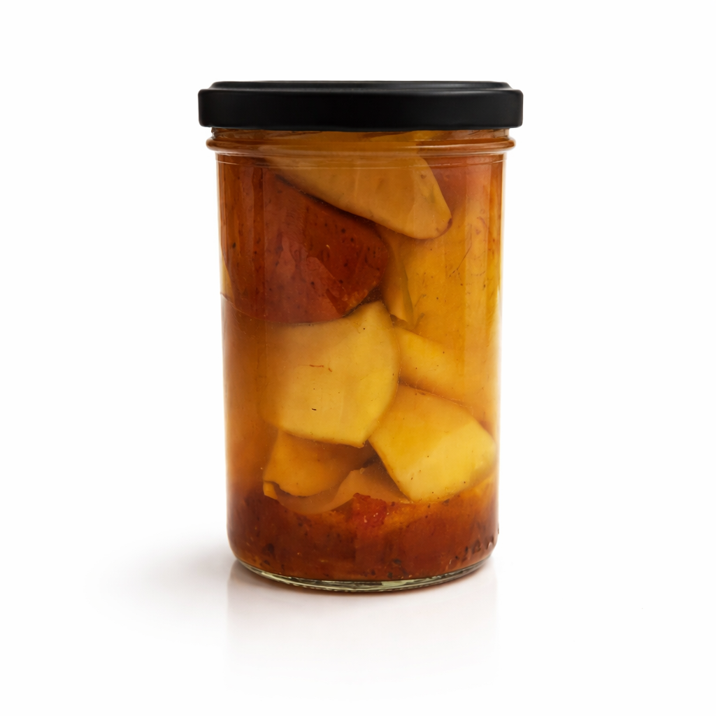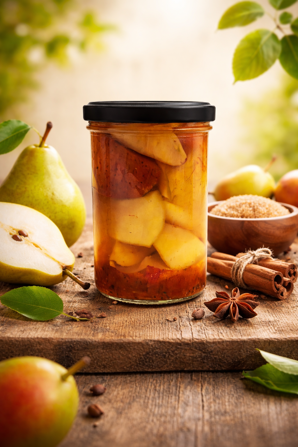 Složení: Bio Hrušky 60%, voda 30%, Bio třtinový cukr 9%, kys. citr. 0,73%, Bio skořice 0,09%, Bio badyán 0,09%, Bio hřebíček 0,09%